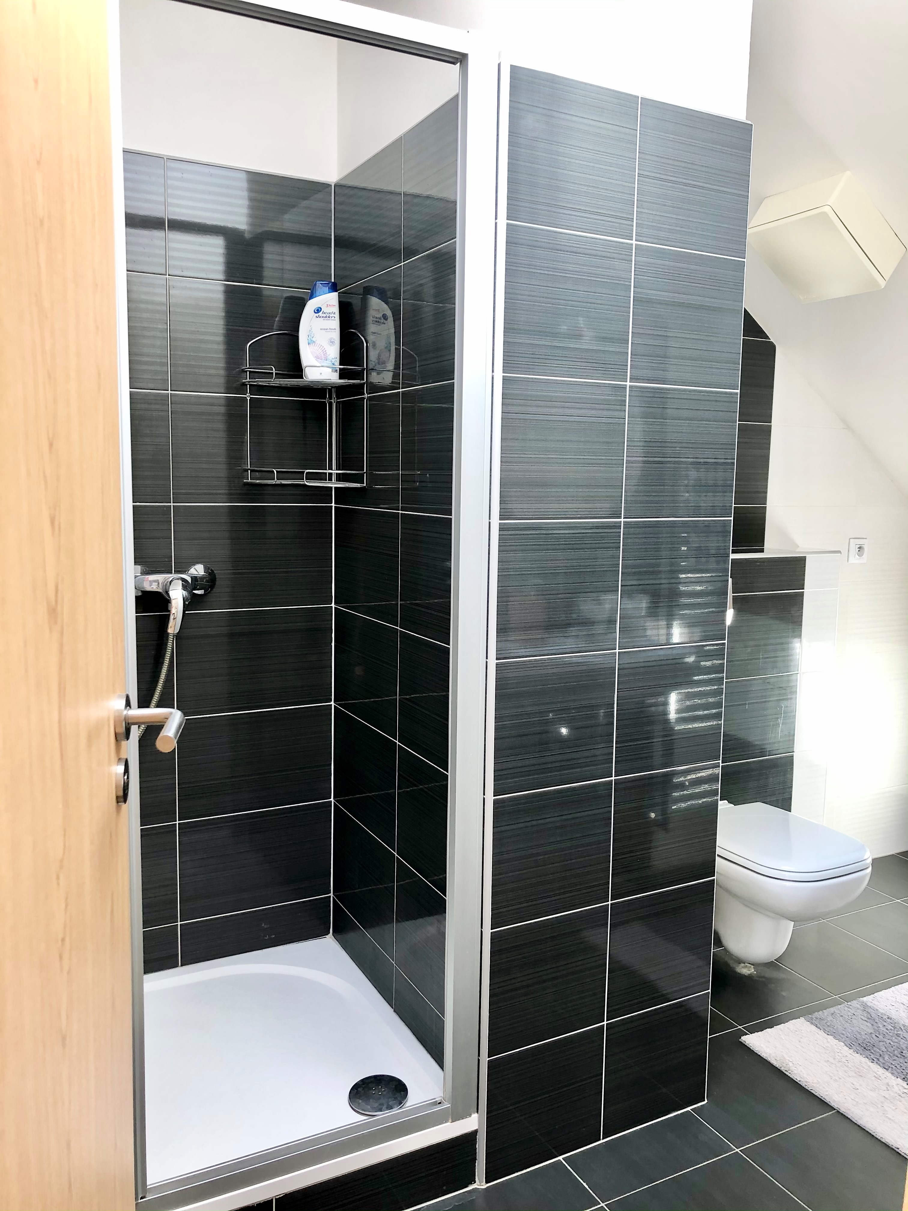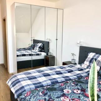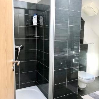 - Dolní patro: prostorná vstupní chodba, 2 ložnice (jedna s šatnou), koupelna s vanou, samostatné WC, úložný prostor pod schody, světlý obývací pokoj s kuchyňským koutem a vstupem na balkon orientovaný na jih s výhledem do klidného vnitrobloku.