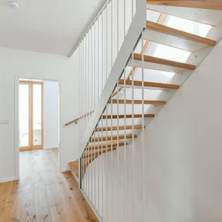 Byt č.2 je v podstatě řadový domek, který má samostatný vstup ze společné zahrady. K tomuto bytu náleží předzahrádka o velikosti 8,2 m2. Vzhledem ke svažitému terénu jsou přízemní okna směrem do ulice příjemně vyvýšena. Byt je rozložen do 3 podlaží, vestavěná půdní galerie není započítána v užitné ploše, nicméně může sloužit jako další pokoj či pracovna a dá se zde dodělat koupelna Proto tento byt ocení zejména klienti, kteří hledají dispozici větší než 4kk.