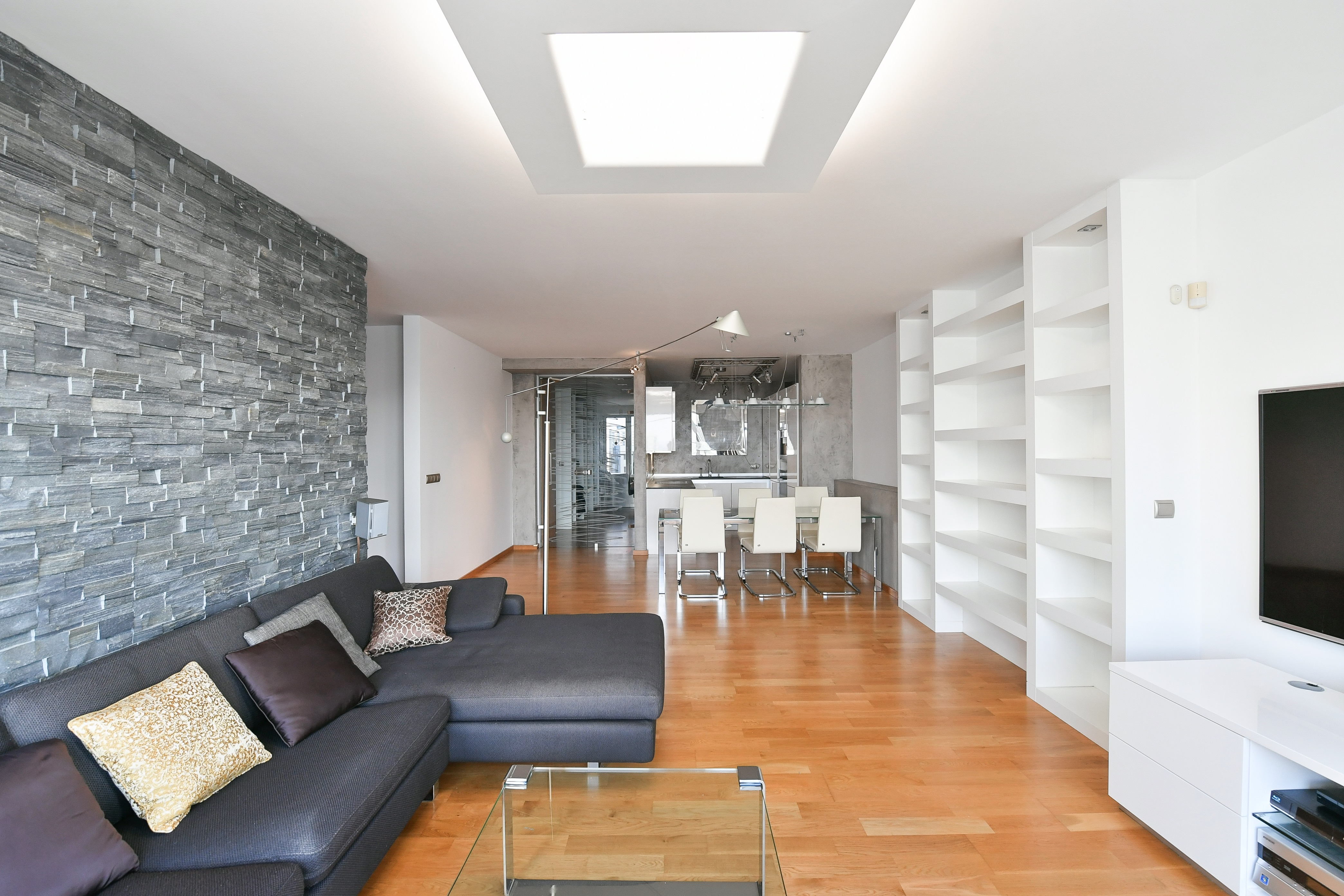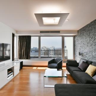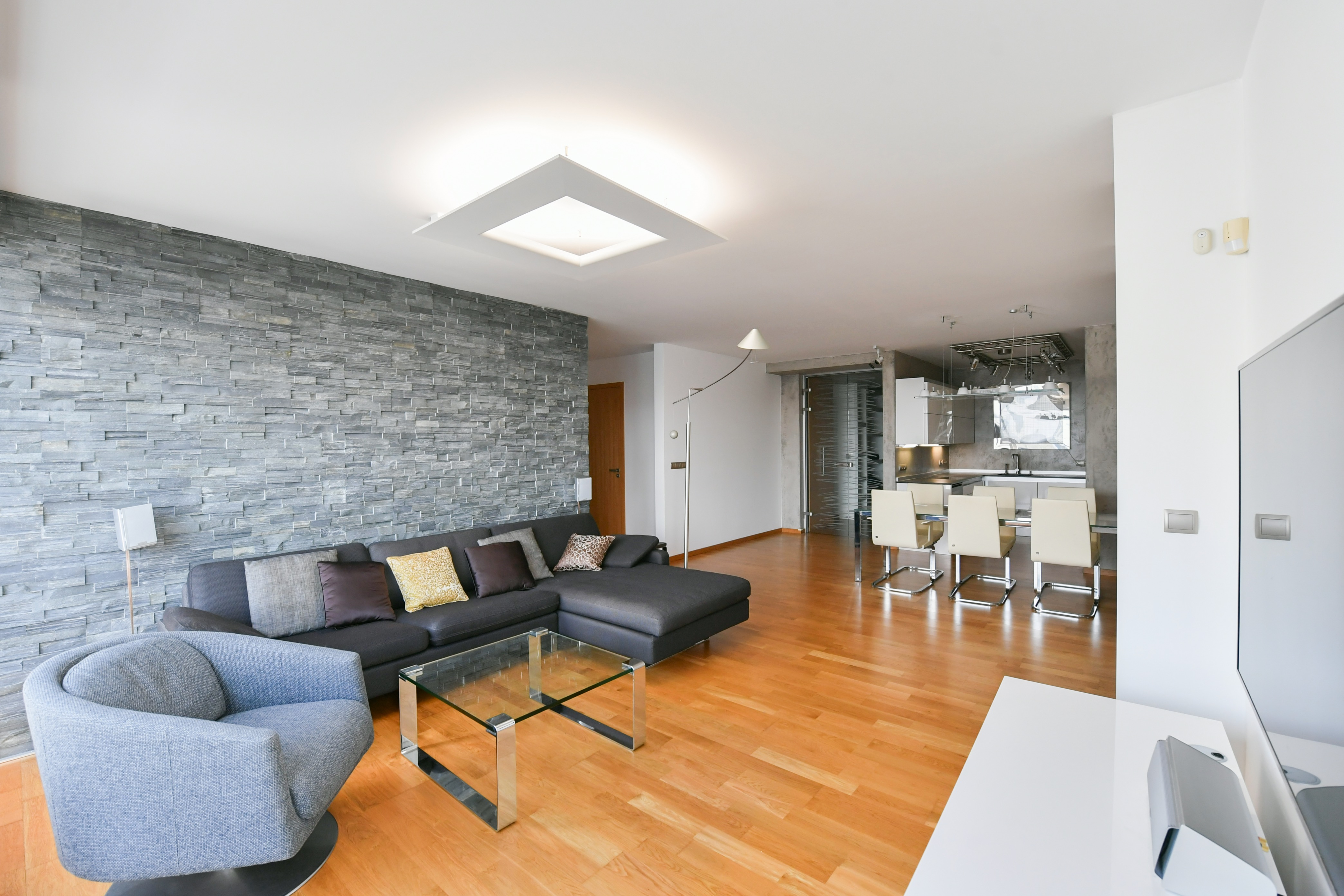 Byt prošel kompletní rekonstrukcí před 10ti lety dle návrhu renomovaného architekta Šusty a prodává se včetně veškerého vestavěného nábytku a designového osvětlení. Veškerý nábytek a vybavení jsou již zahrnuty v ceně. Interiér nabízí vysoce kvalitní standardy, včetně vyhřívaných podlah v koupelnách, dvou šaten s vestavěným nábytkem na míru, nadstandardní kuchyně se spotřebiči Miele včetně zabudovaného kávovaru a ohřívače talířů, klimatizace ve všech pokojích, betonových stěrek, prémiového osvětlení Artemide či zabudovaného ambientního osvícení. V bytě jsou také instalovány reproduktory pro lepší ozvučení a alarm.