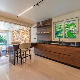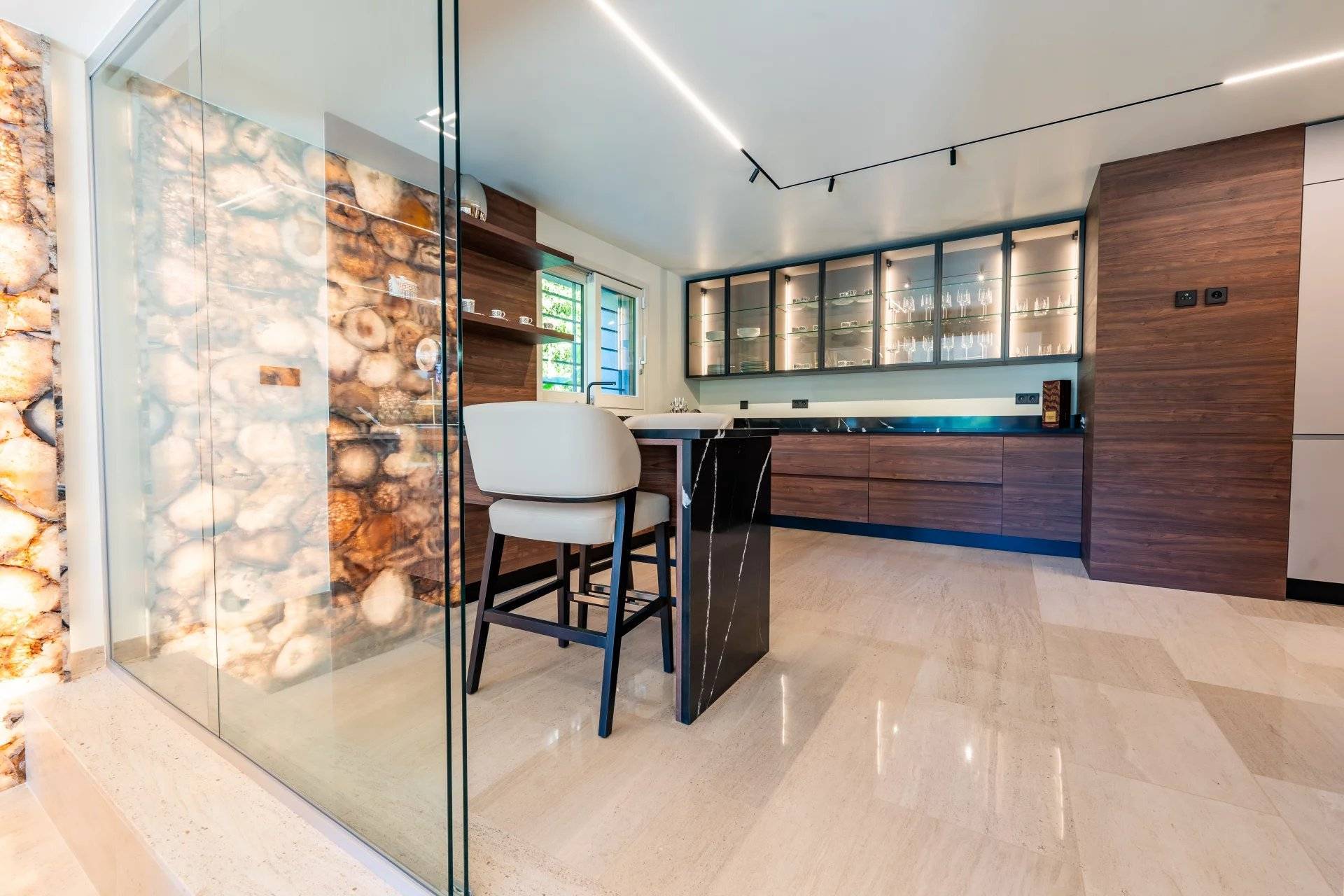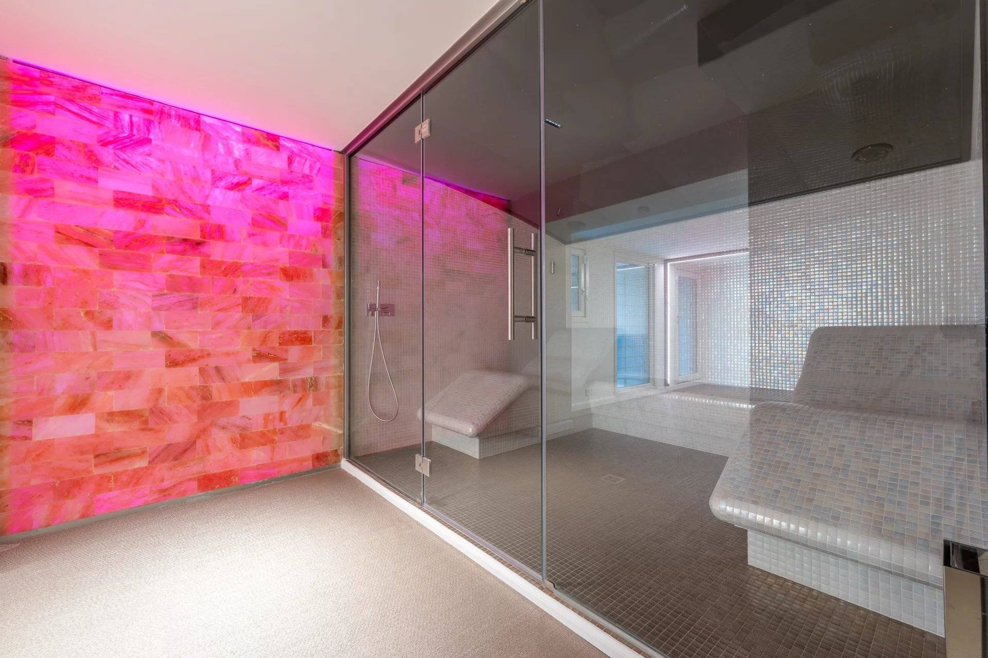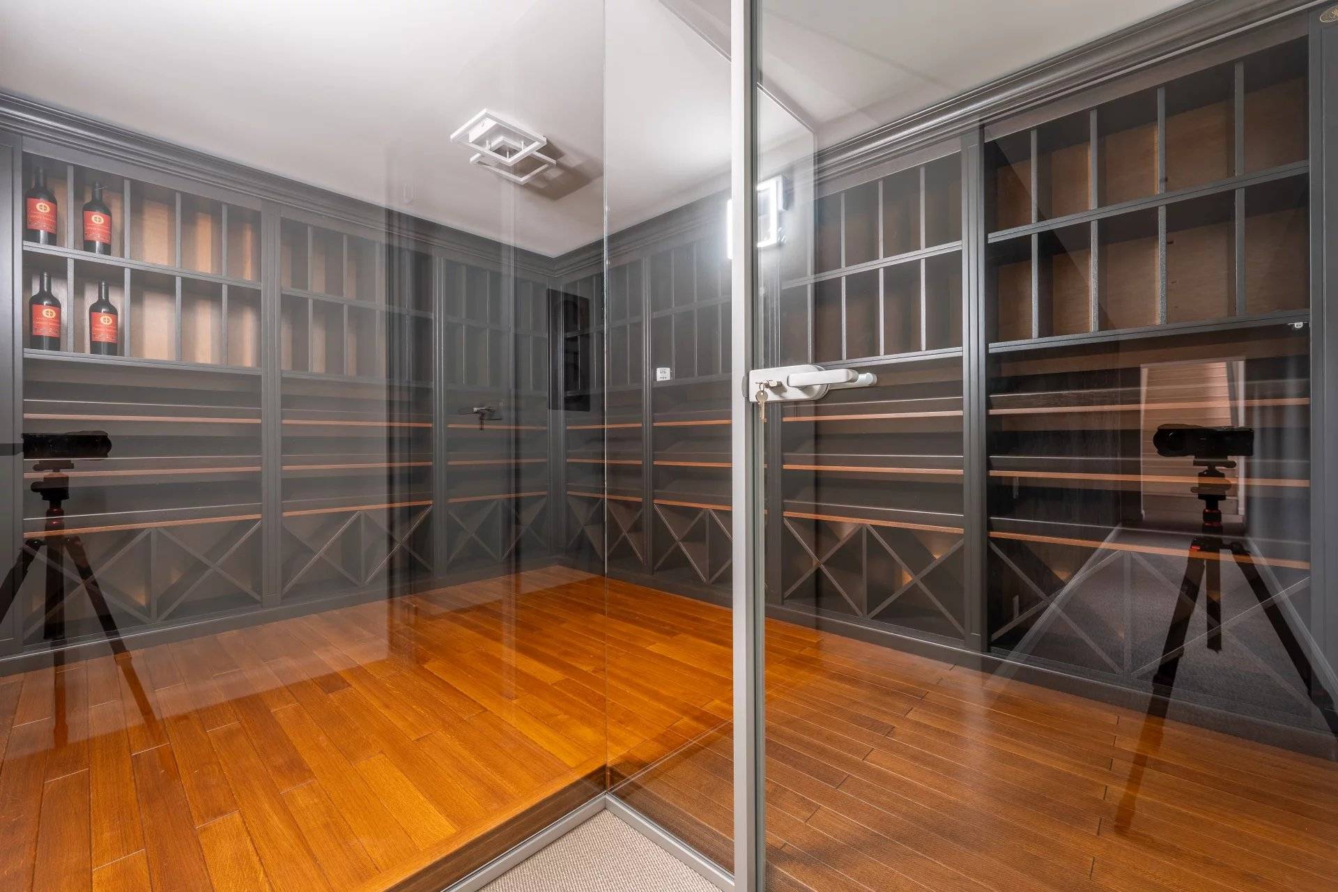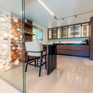 Samostatný apartmán s jednou ložnicí, posilovna, sauna, parní lázeň, vinný sklípek, velká garáž pro tři vozidla a několik venkovních parkovacích míst doplňují tuto nemovitost. Vše na rovném, zalesněném a upraveném pozemku o rozloze 1 800 m².