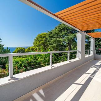 V patře se nacházejí tři hlavní ložnice s vlastními koupelnami a šatnami. Všechny pokoje vedou na velkou terasu s výhledem na moře.