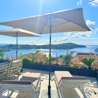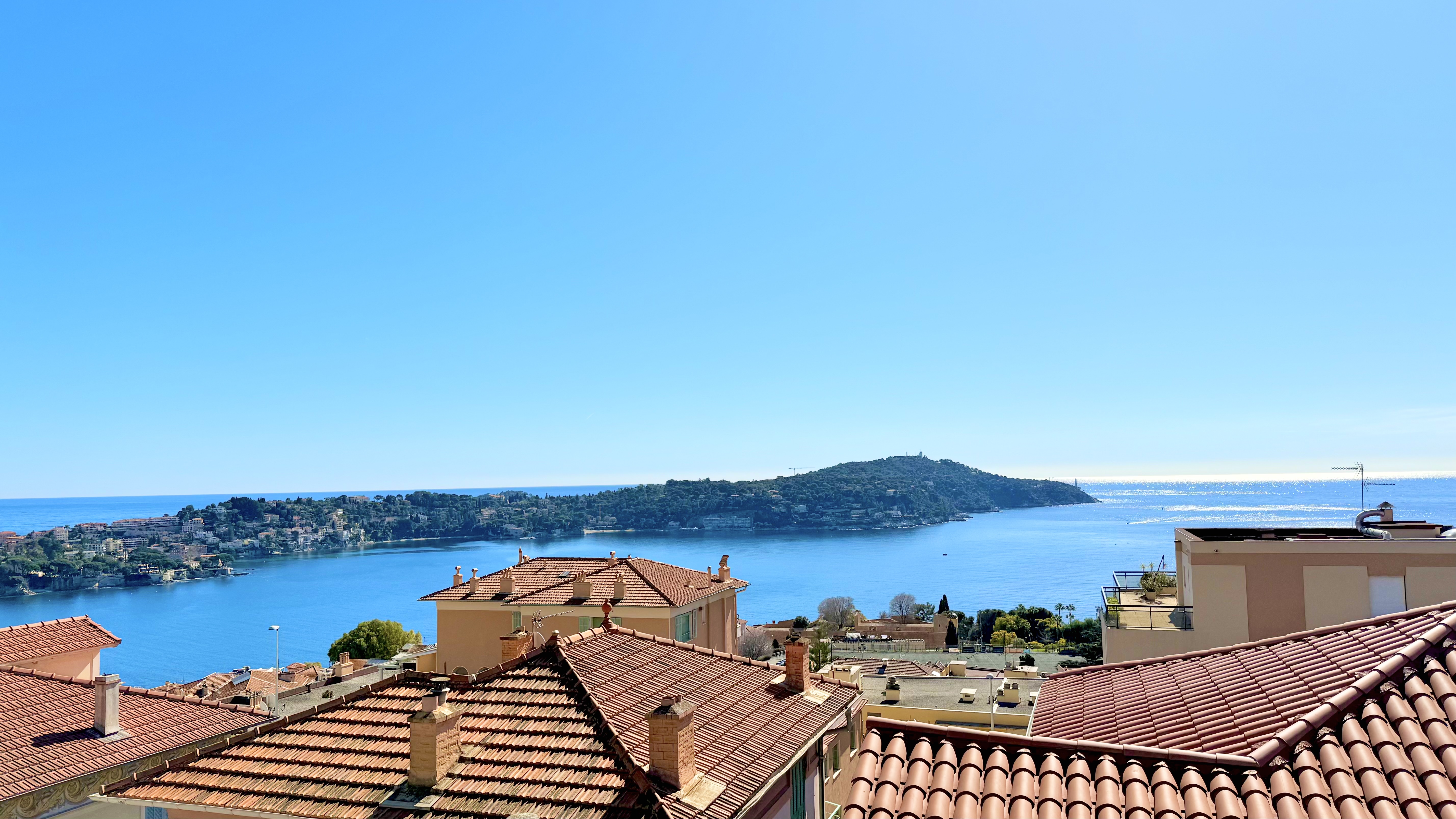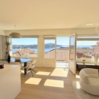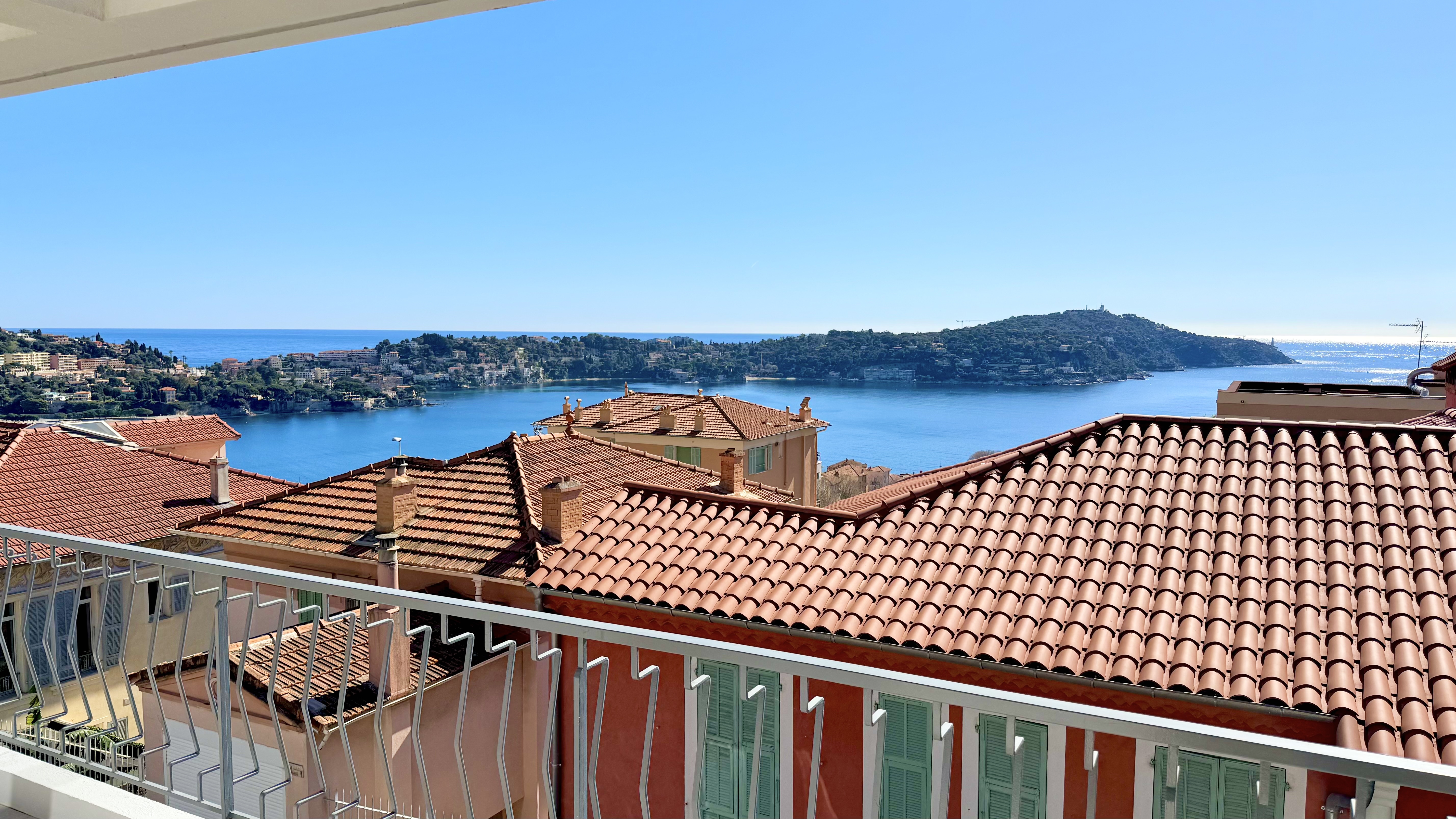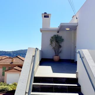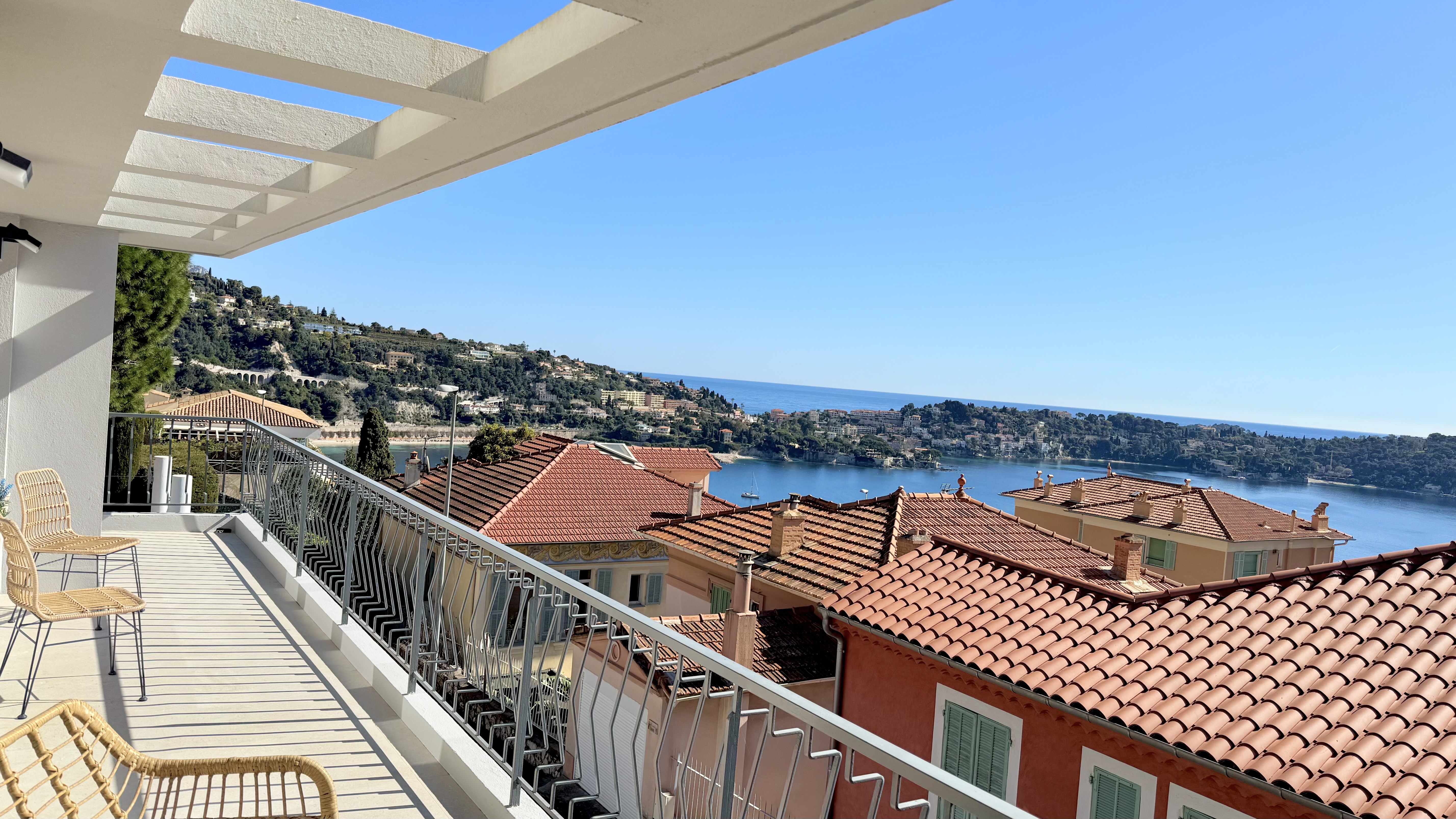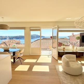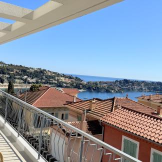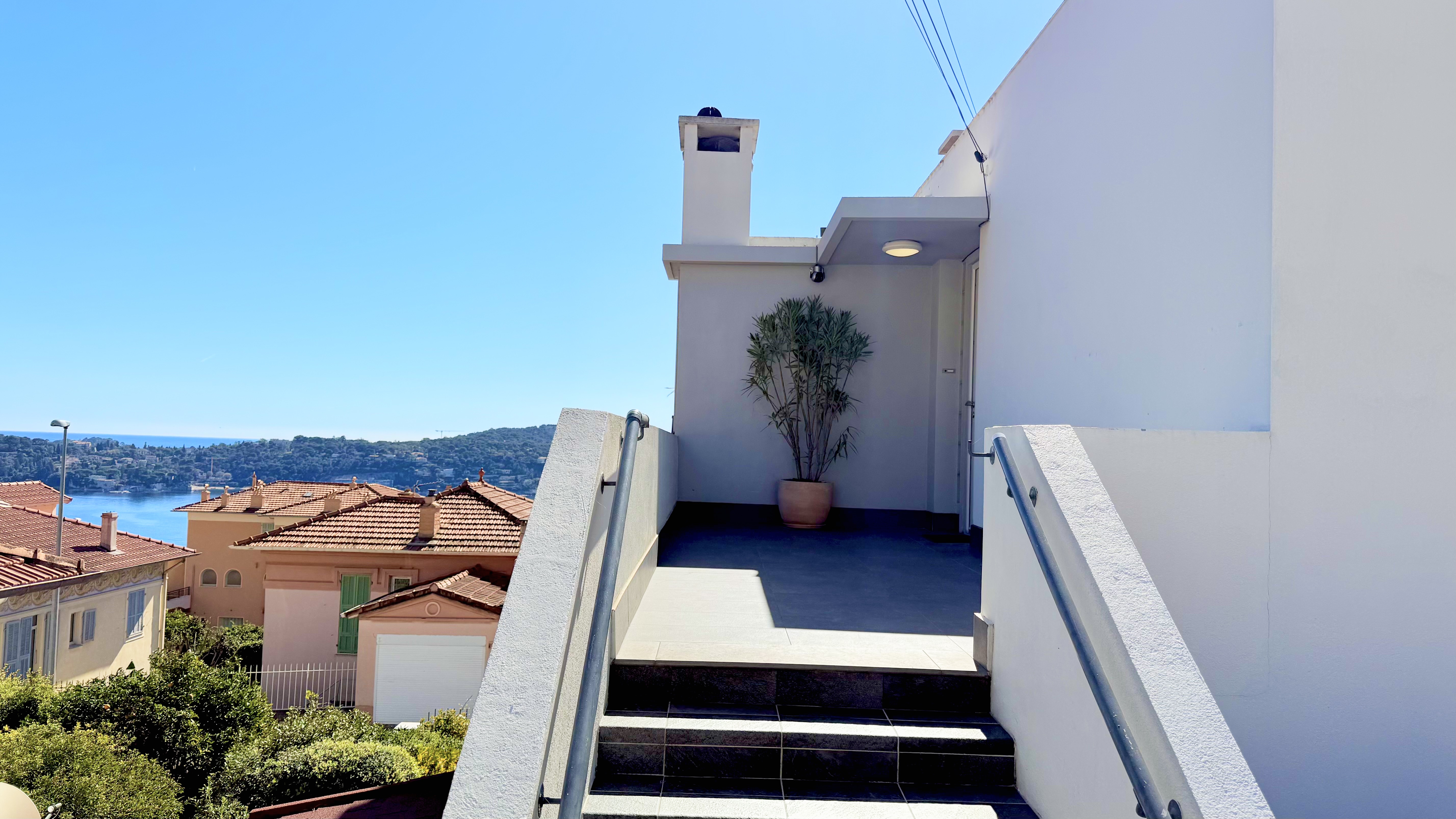 Výjimečný byt o rozloze přibližně 100 m² po renovaci, který se nachází v malém bytovém domě. Byt má samostatný vchod a skládá se z obývacího pokoje s otevřenou vybavenou kuchyní, která vede na slunnou terasu o rozloze přibližně 35 m² s letní kuchyní, dvou ložnic s vlastní koupelnou a třetí ložnice. Služby a renovace jsou na vysoké úrovni. Klidná lokalita v blízkosti občanské vybavenosti, s krásným výhledem na moře, přístav Villefranche a Cap Ferrat. Snadné parkování. Střešní terasa o rozloze 100 m².
